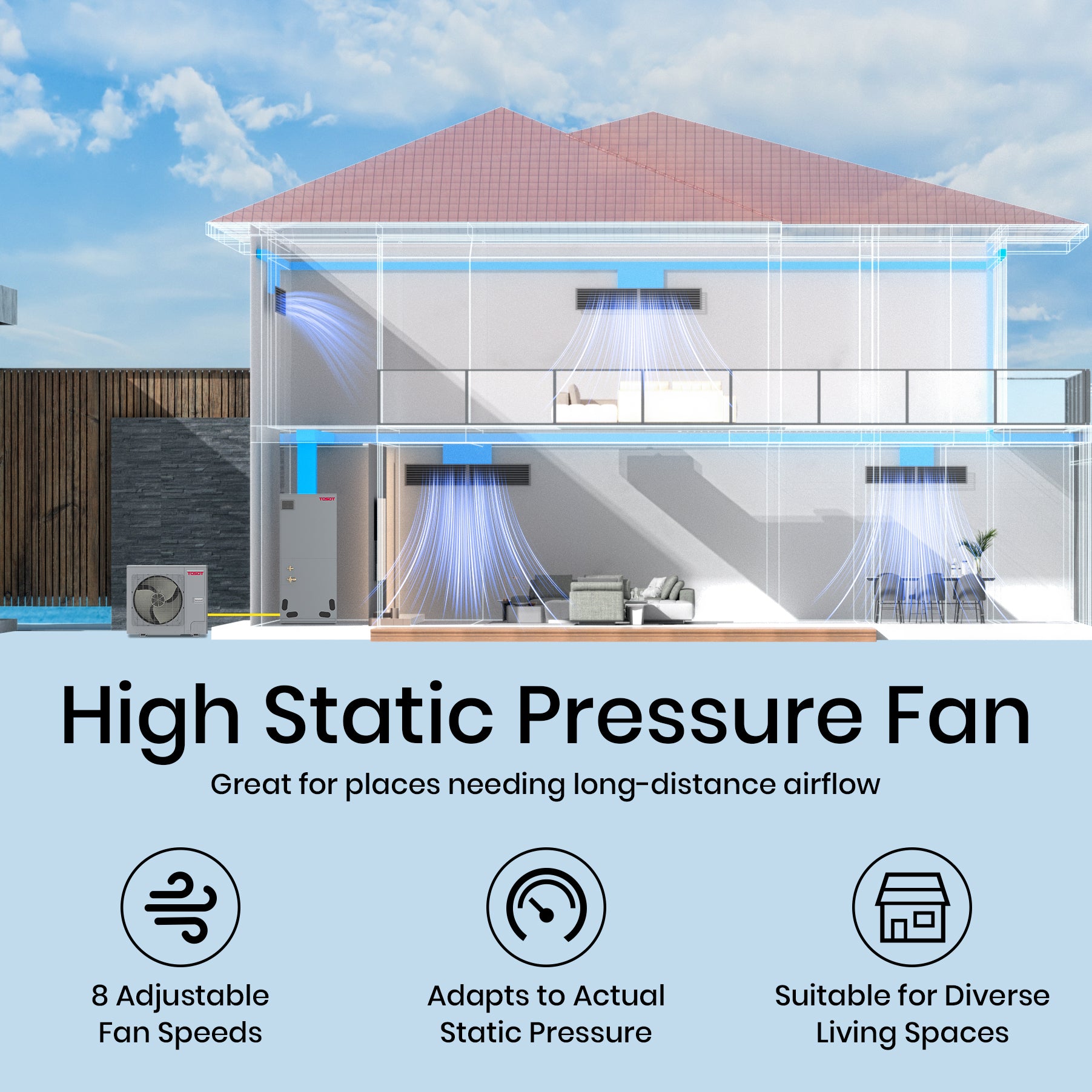TOSOT Ducted Heat pump is capable of providing 100% heating capacity at -4°F and reliable operation at -22°F, compared to other brands that might malfunction under the temperature of -13°F. Provide 100% cooling performance at 115°F.