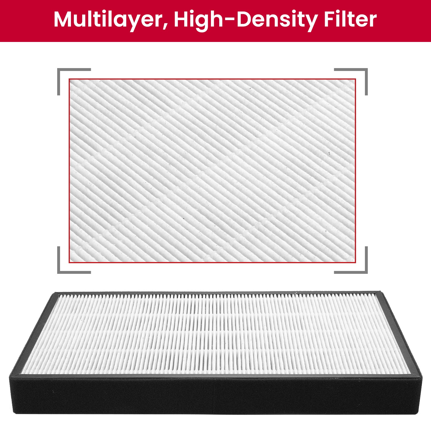 • Larger Filter Area: Cover a larger area thanks to high-density, pleated filter layers that are capable of filtering more airborne particles while providing a smoother airflow.