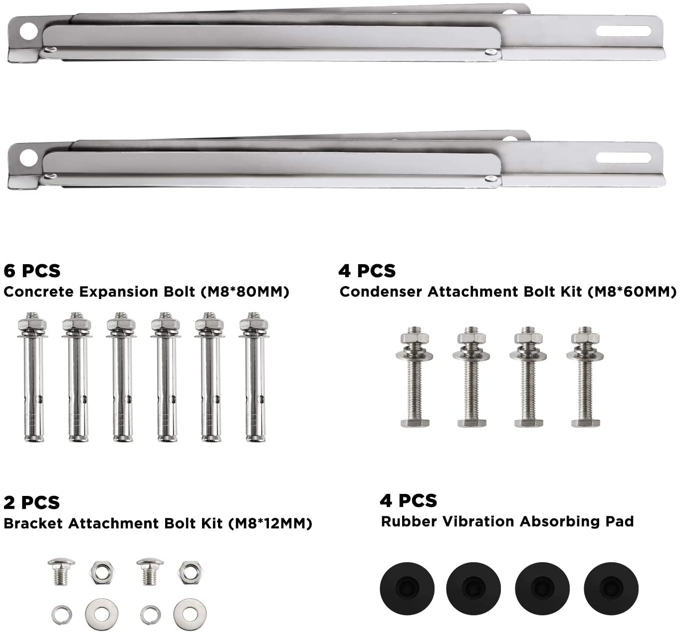 - CONDENSER PROTECTION: A mini-split condenser placed on the ground can be damaged by water, debris, or vandalism. Protect your condenser and keep your home cool by mounting your condenser off the ground with the split AC wall-mounting bracket.